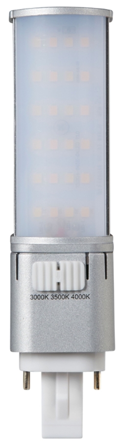 8W LED RETROFIT BULB G24Q/G24D =18W CFL 3500K CRI-83 950LM 120DEG BEAM ANGLE 50000HRS BAA-COMPLIANT L 5.21" D 1.62"