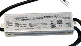 25W LED DRIVER CC-CONSTANT CURRENT 100V-305VAC-IN 700mA 15V-35VDC-OUT TRIAC ELV 0-10V DIMMING PF:>0.90 LOW PROFILE LTF L 3.05" W 1.54" H 0.98"