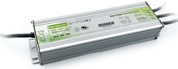 180W 3-CHANNEL LED DRIVER 3 X 60W 100V-305VAC/IN 5A/5000mA X 3 12VDC/OUT PF>0.9 IP68 BUILT-IN PFC FUNCTION L 10.35" W 2.83" H 1.61" 3.09LBS