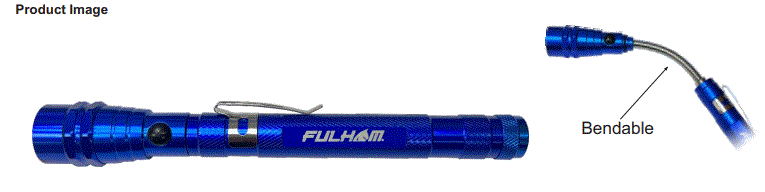 20LM TELESCOPIC MAGNETIC LED FLASH LIGHT ALUMINUM BLUE HOUSING W/MAGNETS ON EITHER END BENDABLE EXTENSION UP TO 22.2" 2-HR RUN TIME L 6.77" D 0.87" 0.21LBS