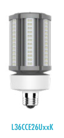 36W = 175W HID LED REPLACEMENT CORN COB E26-MEDIUM SCREW BASE 5000K CRI>85 5400LM 277-480V TYPE B-BALLAST BYPASS DIMMABLE 50000HRS 7.9"L X 3.3"D 1.65LBS EA