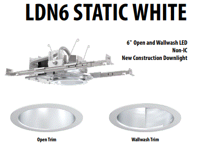 10.4W 6" ROUND OPEN LED NEW CONSTRUCTION DOWNLIGHT HOUSING 4000K 1000LM 120V-277V 0-10V DIM TO 10% LDN6 T24/COMPLIANT L 11.75" W 12.63" H 6.44" 4.73LBS