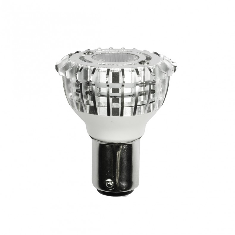 3W LED ALR12 R12 DOUBLE CONTACT BAYONET BASE DCB BA15D =20W LED R12/GBF 3000K 12VAC/DC 390LM 50,000HR 30DEG BEAM ANGLE 1.78"L X 1.47"D