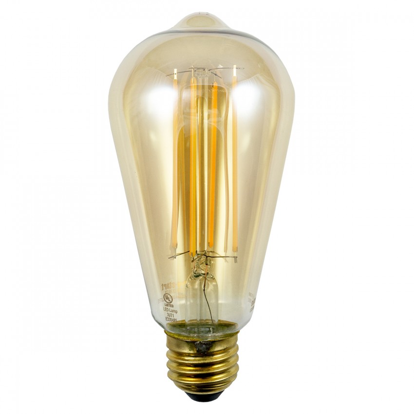5W = 40W AMBER TINTED GLASS LED, ST19, E26-MEDIUM SCREW BASE, 2200K, TOUGH COATED / TF, DIMMABLE, 650LM, 120VAC, 15000HRS *DAMP LOCATION RATED* 5.7"L X 2.55"D