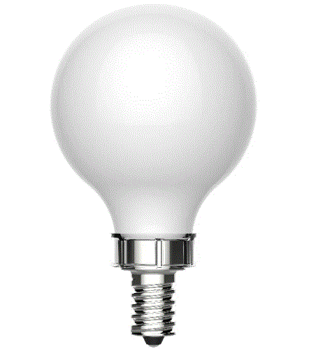 4W G16.5 LED GLASS WHITE E12-CANDELABRA =40W 120V 2700K CRI-80 350LM 15000HRS DAMP LOCATION RATED L 3.40"
