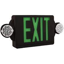 LITHONIA EXIT SIGN W/ TWO LED LAMP HEADS 1.5W 9.6V 120/277V BLACK HOUSING GREEN LETTERS 19.3"L 8"H 3.6LBS
