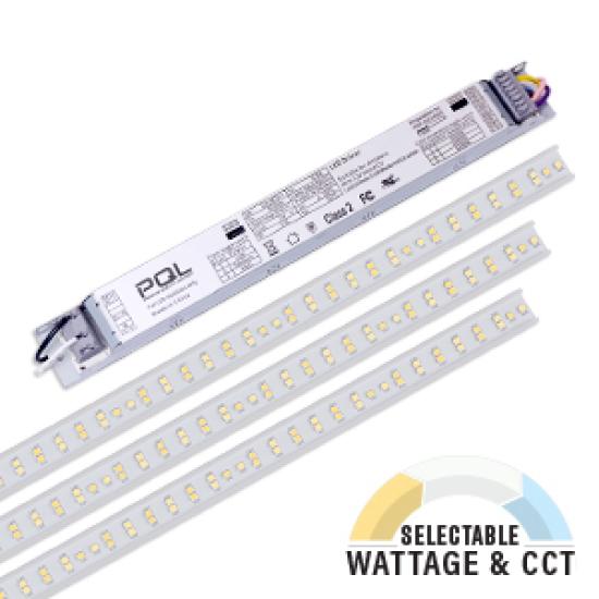 DUAL SELECTABLE 3'X4' RETROFIT LED MODULE/DRIVER KIT 20W/30W/40W 120V-277VAC 3500K/4000K/5000K CRI-83 3000LM/4500LM/6000LM 118D BEAM ANGLE 0-10V DIMMING IP20 B2-U1-G1 BUG RATING 50000HRS SNAP & GO MODULE L 43.4" W 0.7" DRIVER L 14.00" W 1.2" 1.50LBS