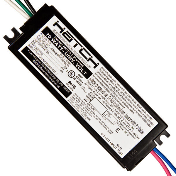 70W ELECTRONIC CERAMIC METAL HALIDE BALLAST SIDE MOUNT MICRO SLIM W/FEET 108-305VAC M/C85 M/C98 M/C139 M/C143 LEADS OUT OPPOSITE SIDES PF: >0.95 TYPE1 OUTDOOR THERMAL PROTECTED 25FT REMOTE MOUNTING 5.50"L X 1.70"W X 1.21"H 0.54LBS EA