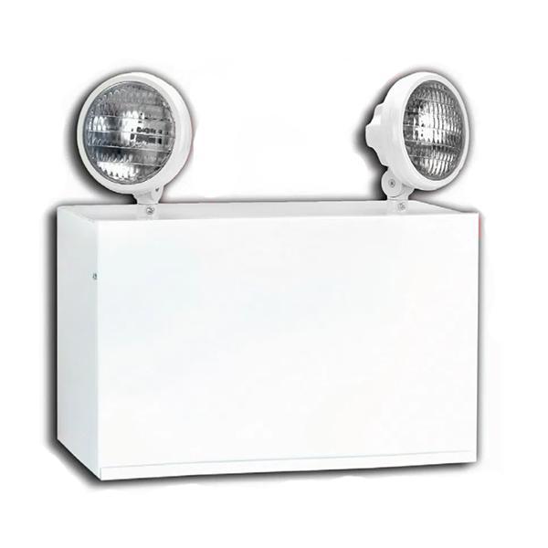180W SURFACE MOUNT EMERGENCY LIGHT 2-HEAD 5W MR16 LED BULLET HEADS 90 MIN RUN TIME WHITE HOUSING BAA L 18.00" H 18.00" 7LBS