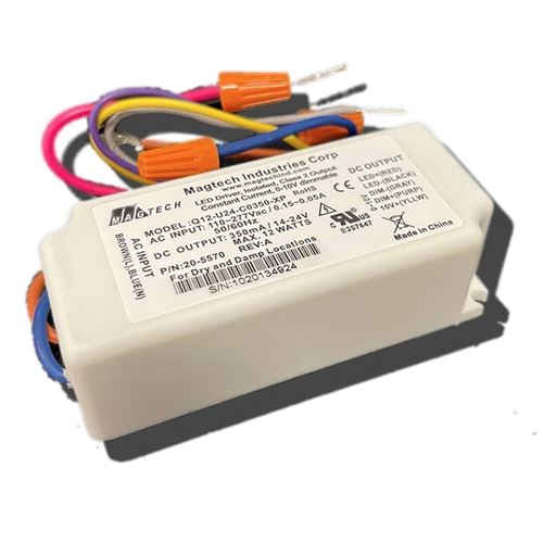 12W LED DRIVER CONSTANT CURRENT CC 100-277VAC-IN 14-24VDC-OUT 350mA DIMMABLE 0-10V MAGTECH QUANTUM