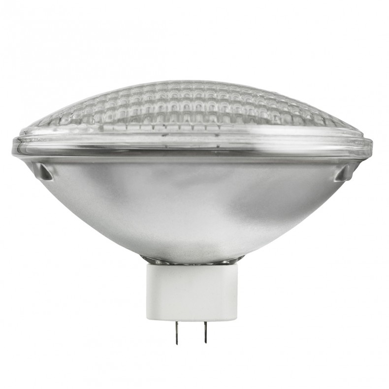500W PAR64 QUARTZ HALOGEN MOGUL END PRONGS GX16D 120V 2000HRS MEDIUM FLOOD 28DEG DIMMABLE 100CRI 6"MOL 8"DIA CA TITLE 20 COMPLIANT
