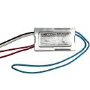 60W ELECTRONIC LOW VOLTAGE TRANSFORMER 120VAC-IN TO 12VAC-OUT DIMMABLE REDUCED SIZE METAL CASE SIDE LEADS WITH DIMMING LOOP 60W MAX 5W MIN LOAD L 2.2" W 1.23" H 0.75"