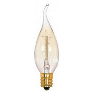 25W 120V DECO CARBON FIL CAND FLAME TIP VINTAGE 5"MOL 1"DIA CA APPROVED