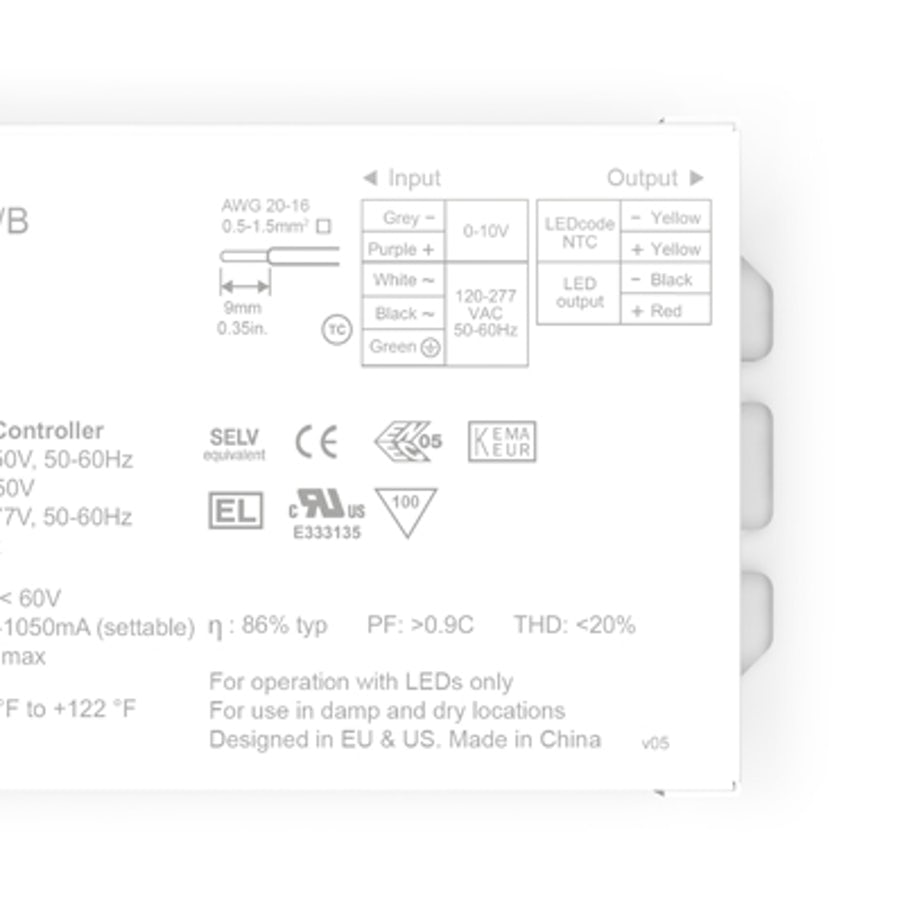 SOLOdrive CC PROGRAMMABLE LED DRIVER 260/U 20W 100-277VAC/IN, 2-55VDC/OUT DALI-2, 1 CONTROL CHANNEL 150-1400MA (PROGRAMMED TO 325mA) PF:>0.90, 0-10V DIMMING W/FEET 11.02"L X 1.18"W X 0.83"H 0.51LBS EA