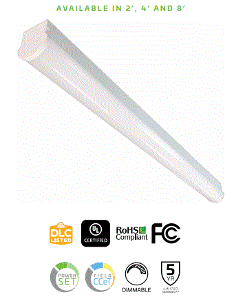 34W 38W 45W LED 48"/4' LINEAR STRIP FIXTURE 120V-277V WATTAGE & CCT-SELECTABLE 3500K 4000K 5000K CRI>80+ 4650LM 5100LM 6000LM 0-10V DIMMING 36000HRS L 48.00" W 3.35" H 3.56"