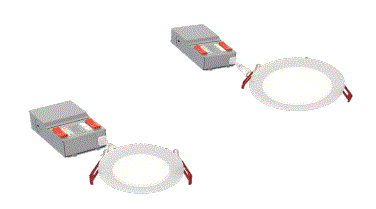 8.55W 11.75W 14.5W LED 4" WAFER THIN ROUND DOWNLIGHT =65W 120V WATTAGE & CCT-SELECTABLE 2700K 3000K 35000K 4000K 5000K CRI-90 700LM 1000LM 1100LM TRIAC DIMMING TO 10% T24-COMPLIANT WET LOCATION RATED ENERGY STAR RATED MATTE WHITE FINISH D 5.30" H 1.40"