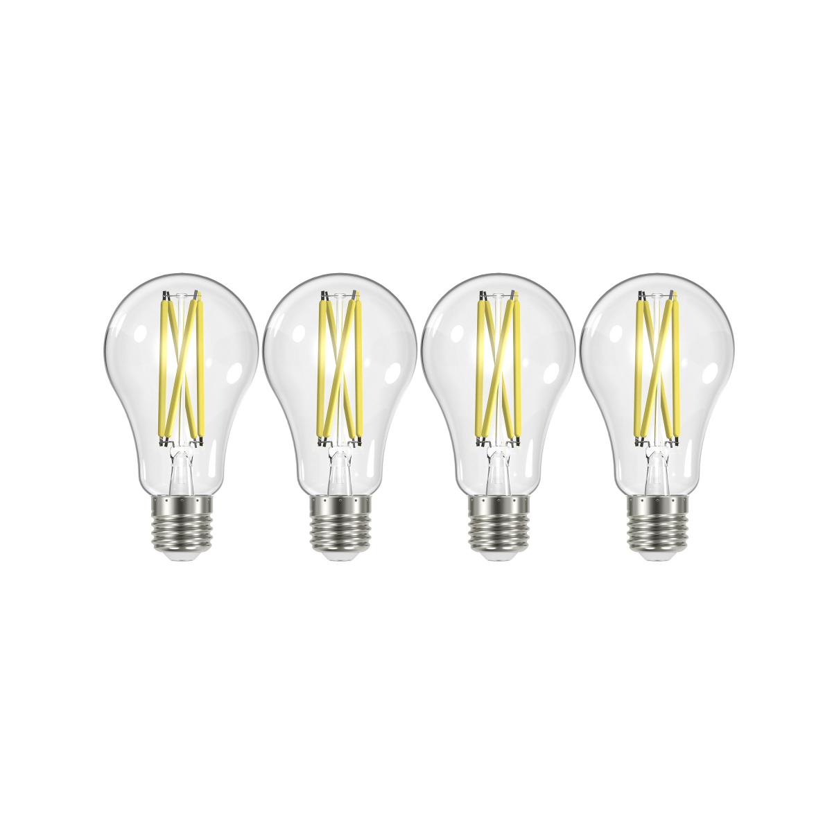 12.5A19/CL/LED/930/120V/4PK 12.5W CLEAR FILAMENT LED A19 E26-MEDIUM SCREW BASE =100W 120V 3000K CRI-90 1500LM 320D BEAM SPREAD WET LOCATION RATED T20/COMPLIANT 4/PK L 4.41" D 2.36" 0.09LB |