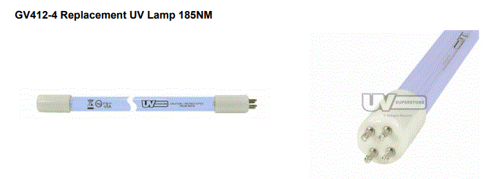 GV412-4 22W 16.12" 67V 370mA 4-PIN FLAT BASE UV 254NM BULB WHITE CERAMIC BASE V-OZONE GLASS 12000HRS |