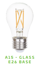 L4.5WA15/827GC/D/E26 4.5W CLEAR GLASS A15 FILAMENT LED E26-MEDIUM SCREW BASE 120V 2700K CRI->80 450LM 15000HRS DIMMABLE L 3.47" D 1.89" |