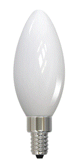 LED4B11/27K/FIL/M/3 4W LED B11 BLUNT TIP MILKY E12-CANDELABRA SCREW BASE =40W 120V 2700K CRI-90 300LM 320DEG BEAM ANGLE DIMMABLE DAMP/ENCLOSED RATED T20/COMPLIANT L 3.85" D 1.37" |
