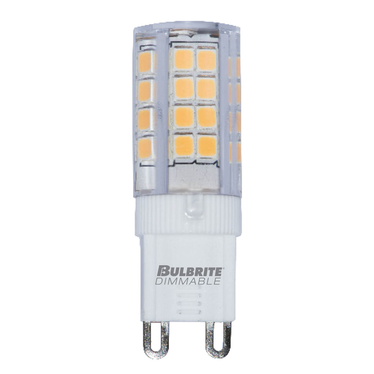 LED4G9/30K/120/F/D 4.5W T4 BULBRITE 2-PIN - G9 3000K 80CRI 120V DIMMABLE 340LM 25,000HRS 2.17"MOL 0.71"DIA |