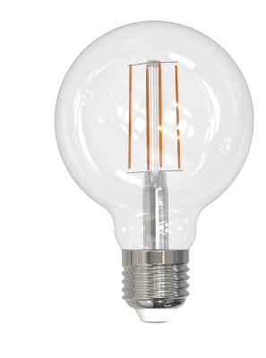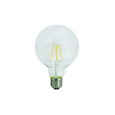 LED8G25/30K/FIL/4/JA8 8.5W CLEAR LED GLASS G25 FILAMENT E26-MEDIUM SCREW BASE =100W 120V 3000K CRI-90 800LM DIMMABLE 320D BEAM SPREAD 15000HRS ENCLOSED/WET RATED CA/COMPLIANT L 4.64" D 3.15" |
