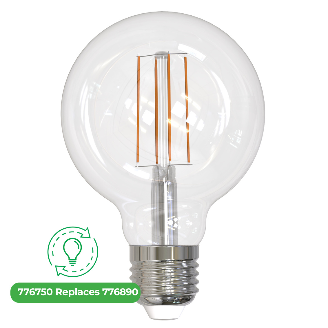 LED8G40/27K/FIL/3 LED FILAMENT 8W 120V G40 MEDIUM SCREW - E26 2700K 90CRI 800L CLEAR 15,000HRS DIMMABLE |