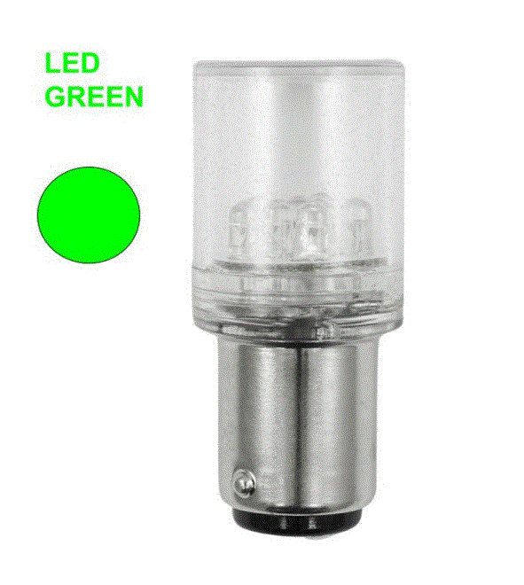 LED-SBGSC12-24V LED 12V-24V 3W 360 SINGLE CONTACT BAYONET - BA15S 100000HRS GREEN (NON-DIMMING) |