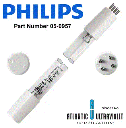 05-0944 63W GERMICIDAL HIGH OUTPUT UV BULB SINGLE ENDED B19-4PIN BASE RPLC FOR STERIL-AIRE 210001301 LAMP W/ARMORLITE SHATTERPROOF COATING L 23.98" D 0.59" |