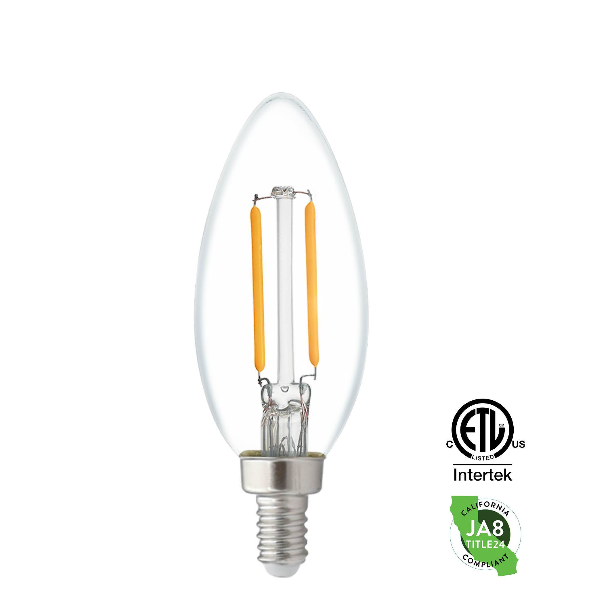 M850291 2.5W LED B11 TORPEDO FILAMENT E12 CANDELABRA BASE 120V 2700K =25W 180LM 90CRI CLEAR FILAMENT STYLE GLASS CA TITLE 20 COMPLIANT 4"MOL 1.5"DIA |