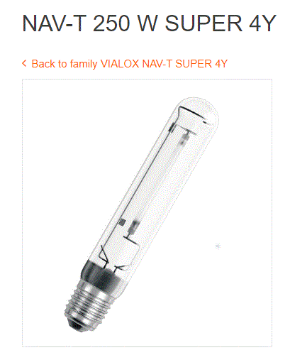 NAV-T-250W/SUPER/4Y 250W HPS EUROPEAN MOGUL SCREW - E40 2000K 25CRI 33,200LM 32,000HRS |