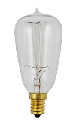 NOS25ST15/SQ/E12 25W ST15 SHAPE CANDELABRA BASE 120V ANTIQUE THREAD 3-3/4"MOL 1.88"DIA NOT TITLE 20 COMPLIANT |