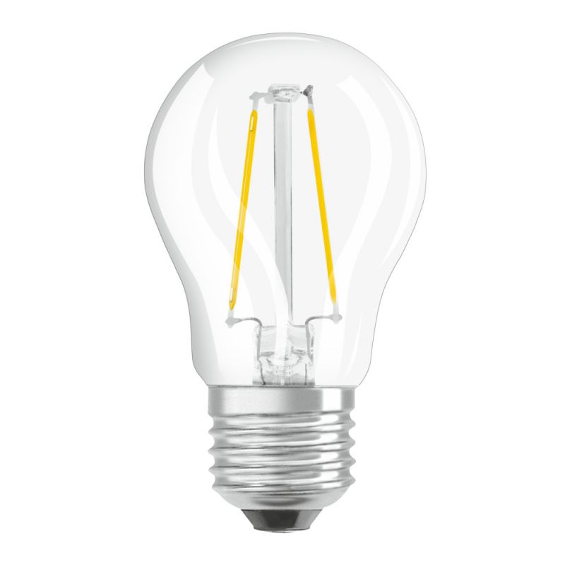 OSRAM-P-CLAS-P25/2.5W/2700K-E27 2.5W=25W 220-240V 300D BEAM ANGLE CLEAR FILAMENT 2700K CRI->80 250LM 15000HRS IP20 3.03"L X 1.77"D |