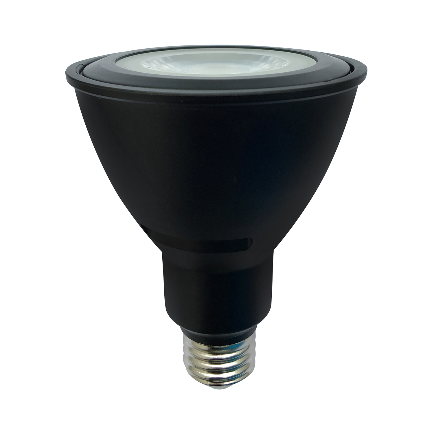 PAR30A14W60K36B-0038 14W LED PAR30 E26 MEDIUM BASE 120V 6000K DIM TO WARM 1100LM CRI 92+ R9 76+ FLOOD 36DEG PHASE DIMMABLE 100% - <0.1% BLACK FINISH 30000HRS 3 YEARS / 25000HRS WARRANTY NO FLICKER ZERO ULTRAVIOLET EMMISION WON'T FADE COLORS OUTDOOR RATED TITLE 24 JA8 COMPLIANT 4" MOL 3.5" DIA |