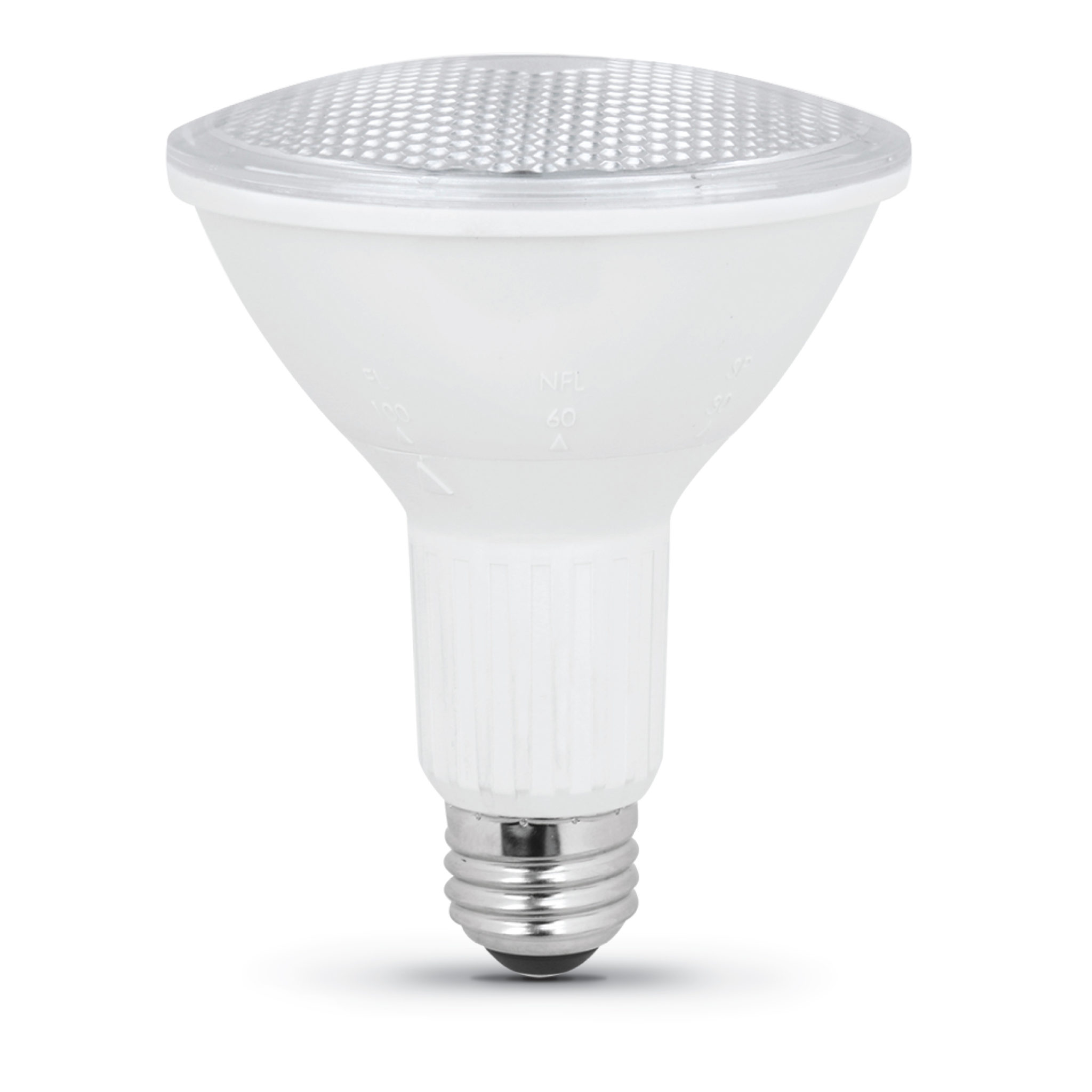 PAR30FL12S/950/WH/LED2 12W=75W PAR30S SELECT LED FL 40' BEAM SPREAD 5000K CRI-90 E26-MEDIUM SCREW 800LM DIMMABLE W/WHITE HOUSING (WET/ENERGY STAR RATED) 3.35"L X 3.74"D |