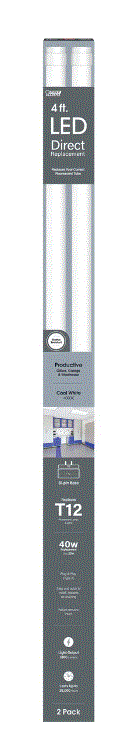 T1248HO/840/LED/2/RP 40W LED 48"/4' T12 LINEAR G13-MEDIUM BIPIN BASE 4000K CRI-80 3600LM 120V-277V TYPE A-BALLAST COMPATIBLE SHATTER-RESISTANT NON-DIM 35000HRS ENCLOSED/DAMP LOCATION RATED **MOQ=10** L 47.80" D 1.50" |