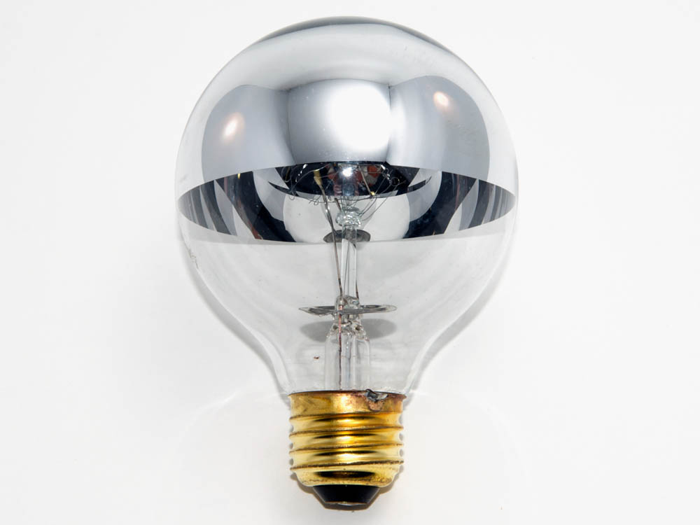 40G25HM-120V 40W G25 HALF MIRROR MED BASE 1500HRS 4-3/8"MOL SILVER BOWL CA APPROVED |