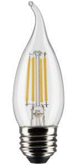4CA10/LED/927/CL/120V/E12 LED 4W CA15 BENT TIP =40W 2700K 90CRI 350LM DIMMABLE E12 CANDELABRA BASE 120V CLEAR FILAMENT STYLE 4.72"MOL ** CALIFORNIA COMPLIANT |