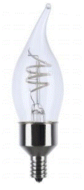 4CA10/LED/930/FR/120V/E12 4W LED FROSTED GLASS CA10 FILAMENT NICKEL PLATED ALUMINUM E12-CANDELABRA SCREW BASE =40W 120V 3000K CRI>90+ 350LM 300DEG BEAM ANGLE DIMMABLE 15000HRS ENCLOSED RATED L 4.72" D 1.38" 0.11LBS |