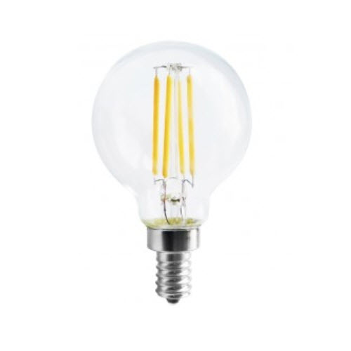 4G16.5/LED/CL/927/120V/E12 4W LED G16.5 CLEAR FILAMENT GLOBE E12 CANDELABRA SCREW BASE 120V 2700K 90CRI 350LM DIMMABLE =40W 15,000HRS 3.11"MOL 1.97"DIA |
