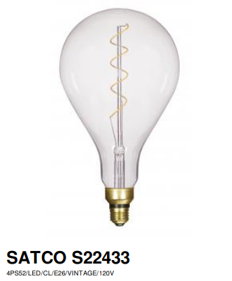 4PS52/LED/CL/E26/VINTAGE/120V 4W CLEAR FILAMENT PS52 E26-MEDIUM SCREW BASE 120V 200LM CRI-90 360D BEAM SPREAD DIMMABLE 25000HRS WET LOCATION/ENCLOSED FIXTURE/RoHS/cETLus RATED L 11.81" D 6.31" 1.35LBS |
