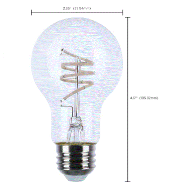 6A19/CL/LED-GF/COIL/927/120V 6W LED A19 CLEAR COIL FILAMENT E26-MEDIUM SCREW BASE =40W 120V 2700K CRI>93+ 500LM 360DEG BEAM SPREAD DIMMABLE ENCLOSED/WET LOCATION RATED 15000HRS T20/T24-COMPLIANT L 4.17" D 2.36" 0.08LBS |