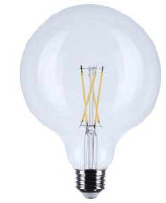 6G25/LED/CL/930/120V 6W = 60W LED CL G25 FILAMENT 120V E26-MEDIUM SCREW 3000K CRI-90, 500LM, DIMMABLE 15000HRS 4.50"L X 3.13"D 0.09LBS EA **T20/COMPLIANT** |