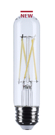 8T10/LED/CL/930/120V/E26 8W CLEAR FILAMENT T10 LED E26-MEDIUM SCREW BASE 120V 3000K CRI-90 800LM 300D BEAM SPREAD DIMMABLE 15000HRS T20/COMPLAINT WET LOCATION RATED L 5.00" D 1.25" 0.10LBS |