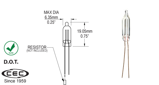 CC24V-MB-LONG 24V 1.2W T3-1/4 MB 1.5"MOL ( KOOMEI REPLACEMENT ) 0.41"DIA |