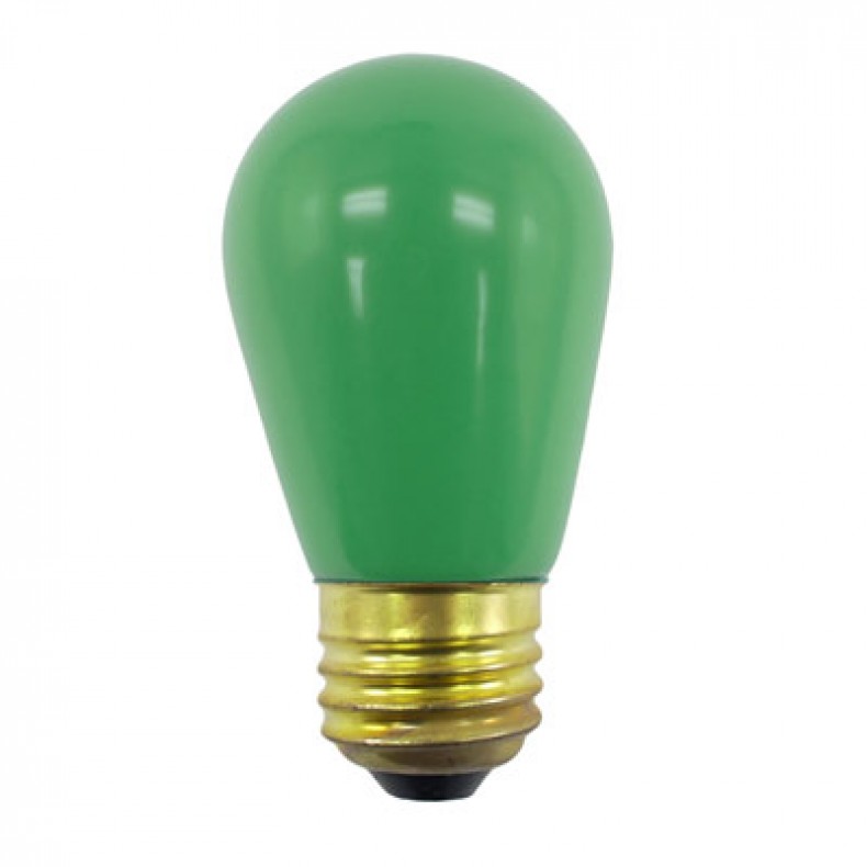 11S14/CG-130V-I 11W S14 INCANDESCENT MEDIUM BASE E26 CERAMIC GREEN IMPORT 3.5"MOL 1.75"DIA CA APPROVED |