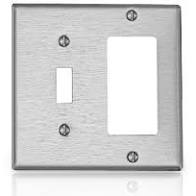 LEVITON-S126 STAINLESS STEEL 2-GANG 1-TOGGLE 1-DECORA/GFCI DEVICE COMBO WALLPLATE |