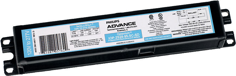IOP2S28115SCSD 2L F14-F28T5 1L F35T5 120V-277V PROGRAMMED START STEP DIMMING BALLAST BF: 1.15 PF:>0.98 L 9.50" W 1.7" H 1.18" |
