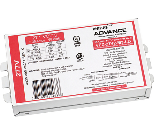 VEZ2Q26M2LD35M 2L 26W CFL ELECTRONIC BALLAST 4PIN G24Q 277V QUICK CONNECT-NO LEADS MARK 10 PROGRAMMED START DIMMABLE 4.55"L X 3.00"W X 1.29"H 0.70LBS EA |