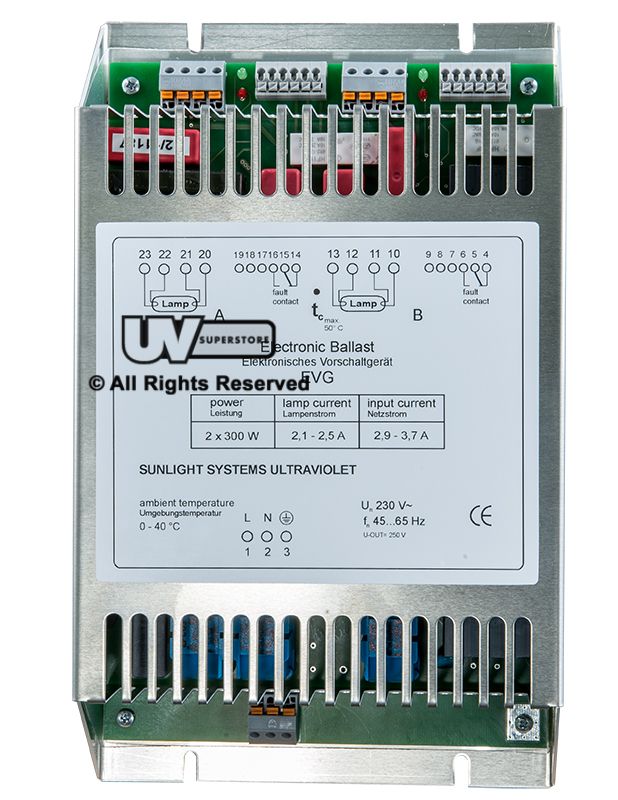 W2T366219 300W X 2 ELECTRONIC UV BALLAST 230V QUICK CONNECT W/GREEN GROUND |